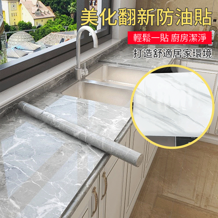 5分鐘前限時搶購 廚房貼紙防水防油大理石家具貼膜自粘牆紙瓷磚灶台桌面櫃子保護膜 - 8卷【1卷僅需149】NT$1199