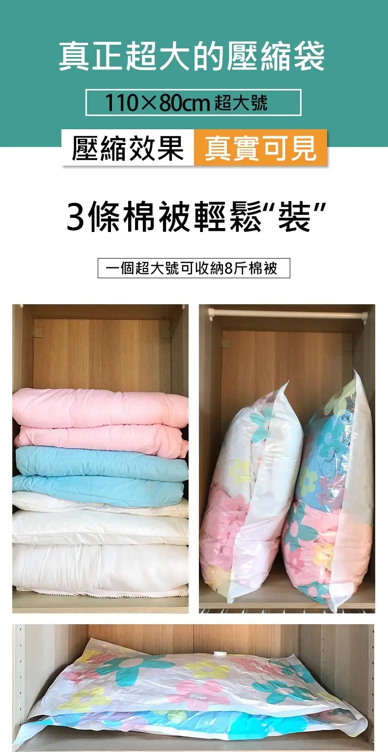 15分鐘前掛式真空壓縮袋推薦,輕鬆節省衣櫃空間 - 【買3送3】尺寸任選★贈電動抽氣機★ NT$999